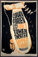 Coonaaan Oooo'Briiieeeen!! Take a look at the brand new poster for Conan O'Brien's comedy show at the Tower Theater in Philadelphia, PA on June 7th, 2010. This is a 12.5"x19" 2-color print designed by T-Bone & Aljax for ABNRML.com. This is one of our first ABNRML prints exclusively screened for Live Nation for official show promotion. We hope it to be the first of many! If you are interested in getting your hands on one of the very few available extra copies, shoot us an email! 55 of these bad boys were produced and since it is for promotion, it will not be on sale at the venue.Available for purchase here!